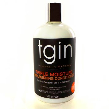 Tgin Triple Moisture Replenishing Conditioner With Shea Butter + Argan Oil is an intense moisturizing conditioner for all hair types. Without sulfates, parabens, lanolin, petroleum, mineral oil, articificial colors or animal testing.